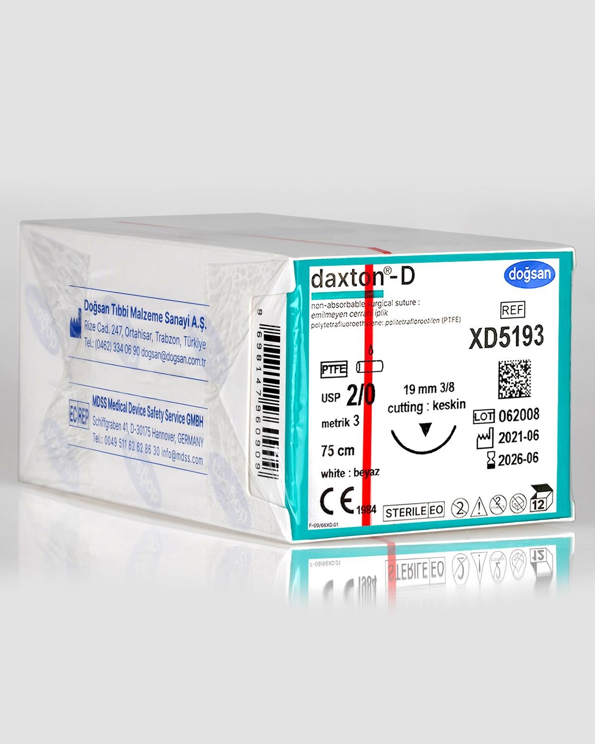 Daxton-D 2/0 19 3/8 Keskin (▼) 75cm TEFLON Emilemeyen Sütür 12 Ad./Pkt; Adlı ürün Cerrahi operasyonlarda kullanılması önerilir.