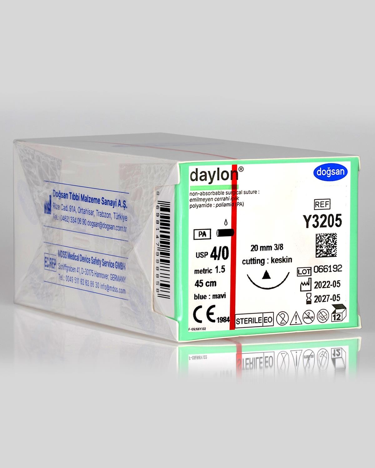 Daylon 4/0 20 3/8 Keskin (Δ) 45cm Polyamid Emilemeyen Sütür 12 Ad./Pkt; Adlı ürün Cerrahi operasyonlarda kullanılması önerilir.