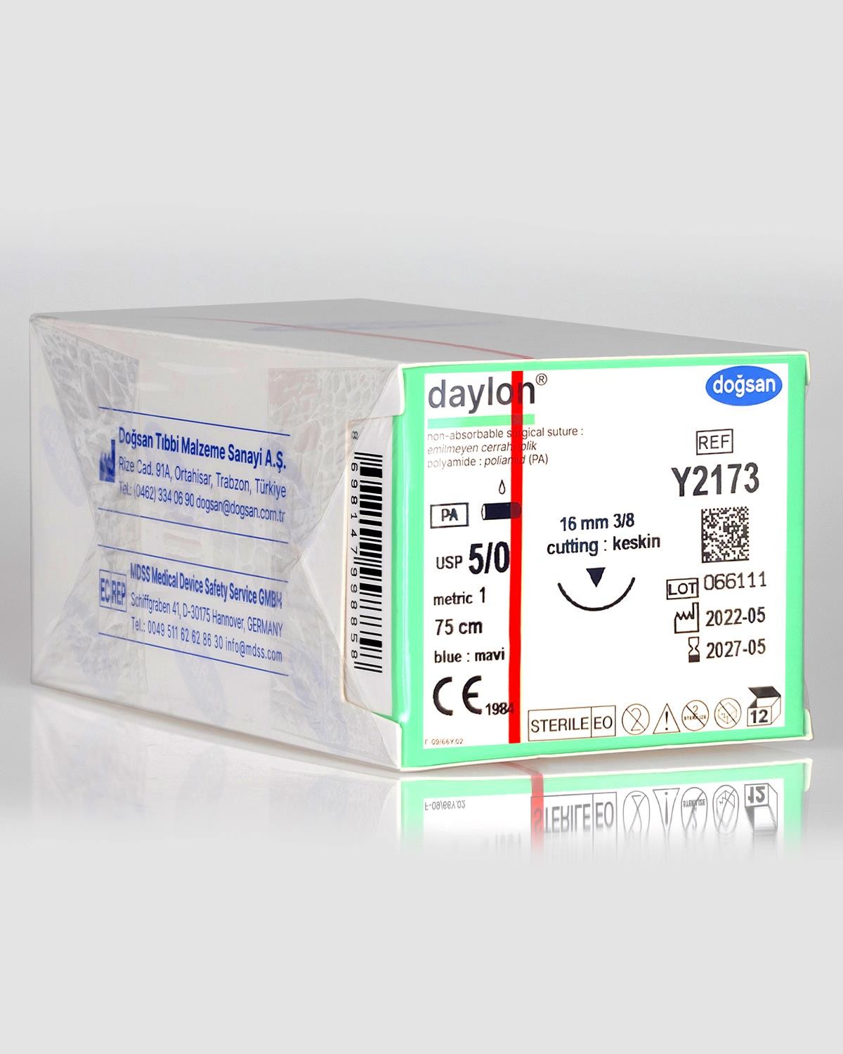 Daylon 5/0 16 3/8 Keskin (▼) 75cm Polyamid Emilemeyen Sütür 12 Ad./Pkt; Adlı ürün Cerrahi operasyonlarda kullanılması önerilir.