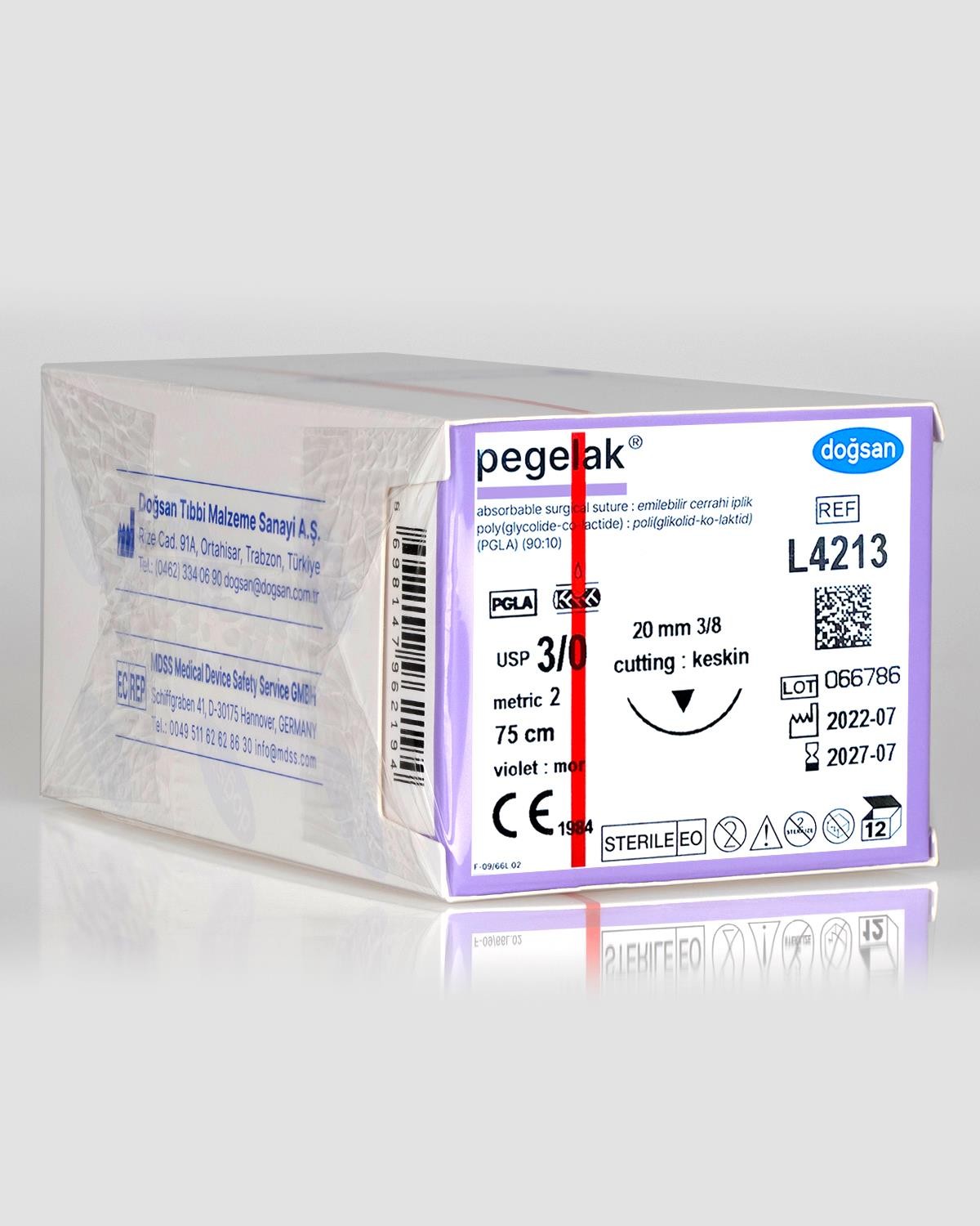 Pegelak 3/0 20 3/8 Keskin (▼) 75cm PGLA Emilebilir Sütür 12 Ad./Pkt; Adlı ürün Cerrahi operasyonlarda kullanılması önerilir.