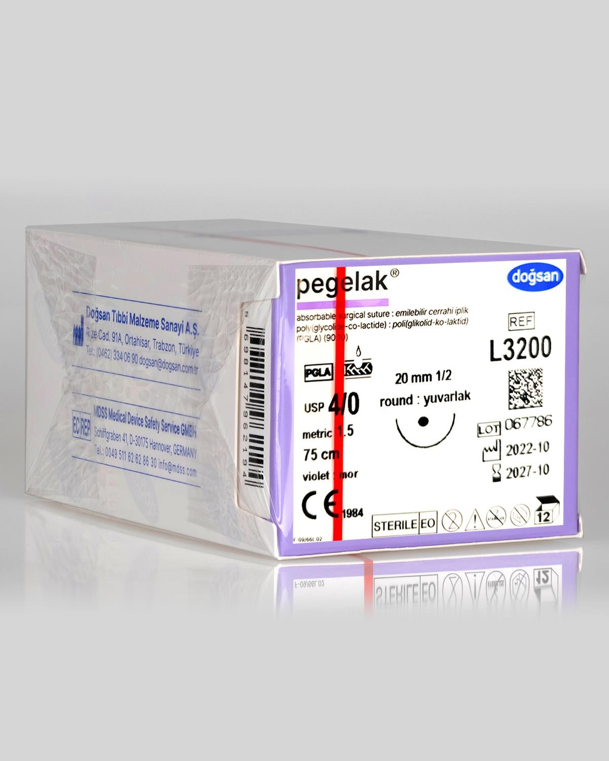 Pegelak 4/0 20 1/2 Yuvarlak (●) 75cm PGLA Emilebilir Sütür 12 Ad./Pkt; Adlı ürün Cerrahi operasyonlarda kullanılması önerilir.
