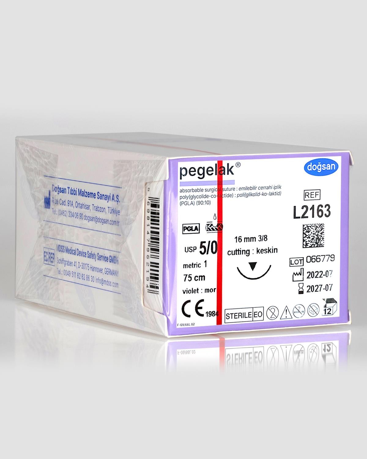 Pegelak 5/0 Keskin (▼) 75cm PGLA Emilebilir Sütür 12 Ad./Pkt; Adlı ürün Cerrahi operasyonlarda kullanılması önerilir.