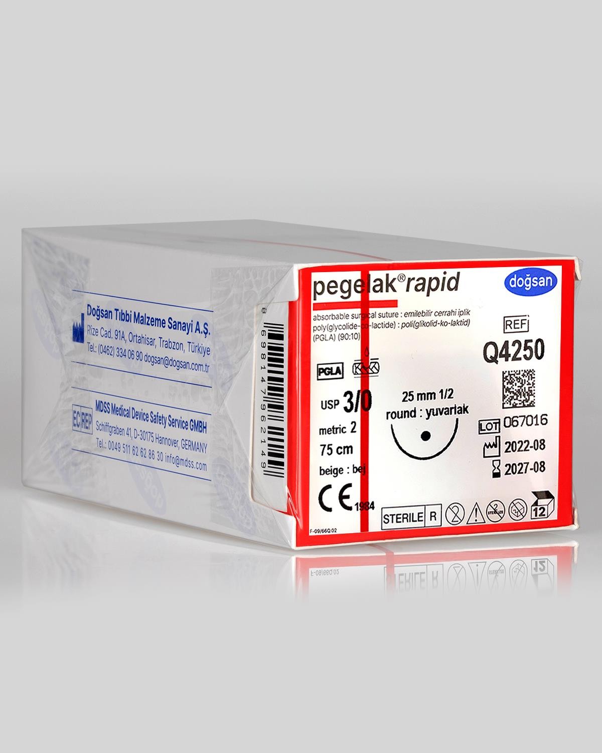 Pegelak Rapid 3/0 25 1/2 Yuvarlak (●) 75cm PGLA Emilebilir Sütür 12 Ad./Pkt; Adlı ürün Cerrahi operasyonlarda kullanılması önerilir.