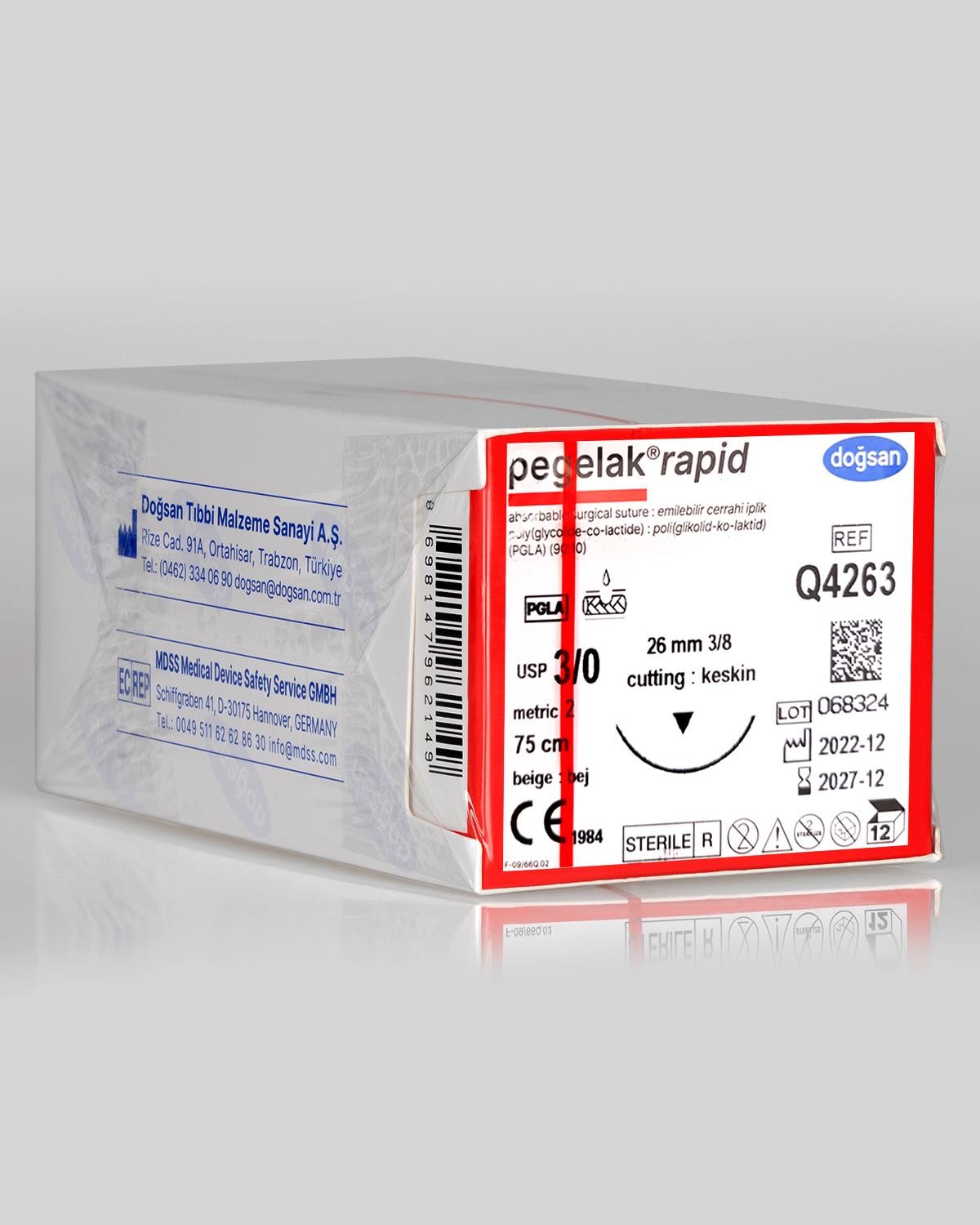 Pegelak Rapid 3/0 26 3/8 Keskin (▼) 75cm PGLA Emilebilir Sütür 12 Ad./Pkt; Adlı ürün Cerrahi operasyonlarda kullanılması önerilir.