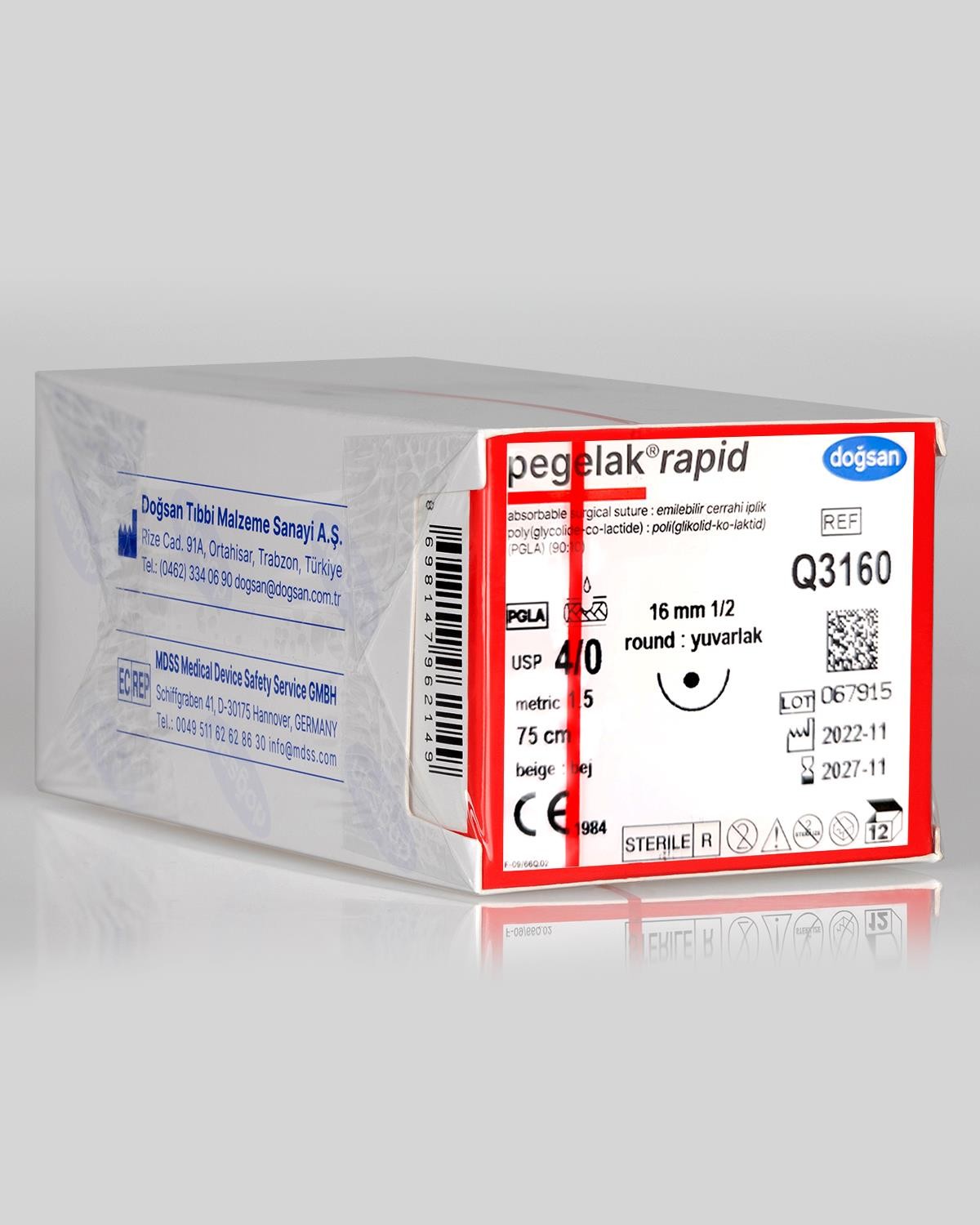 Pegelak Rapid 4/0 16 1/2 Yuvarlak (●) 75cm PGLA Emilebilir Sütür 12 Ad./Pkt; Adlı ürün Cerrahi operasyonlarda kullanılması önerilir.