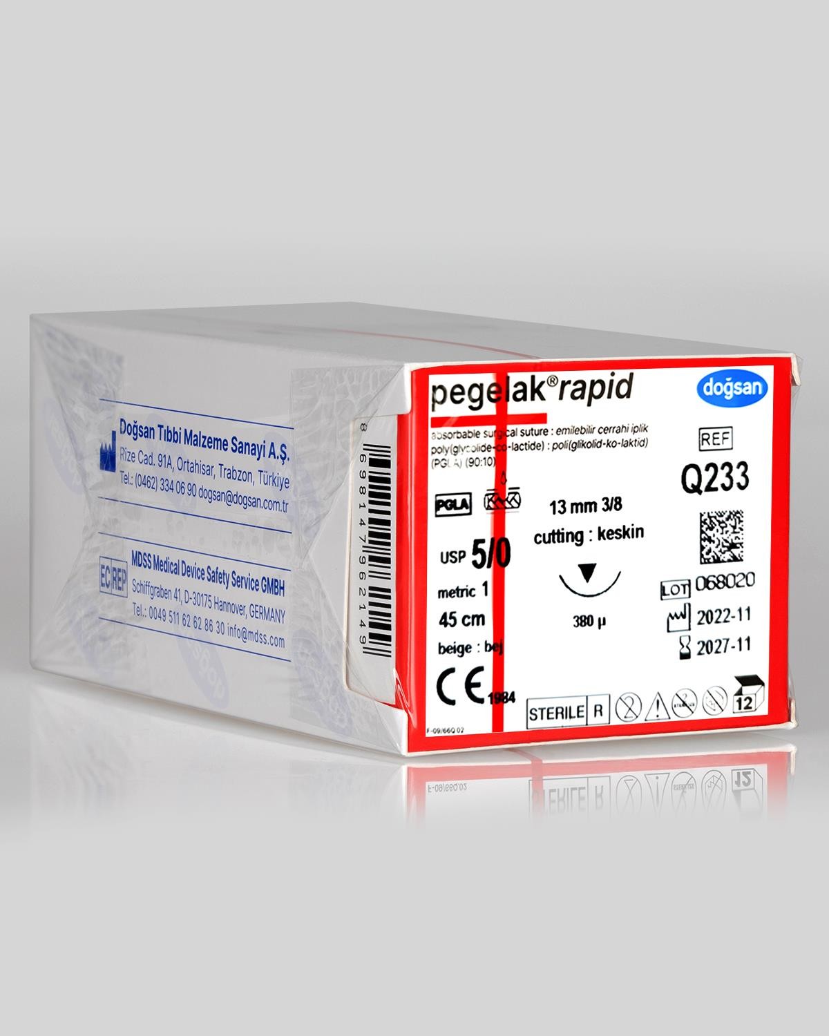 Pegelak Rapid 5/0 13 3/8 Keskin (▼) 45cm PGLA Emilebilir Sütür 12 Ad./Pkt; Adlı ürün Cerrahi operasyonlarda kullanılması önerilir.