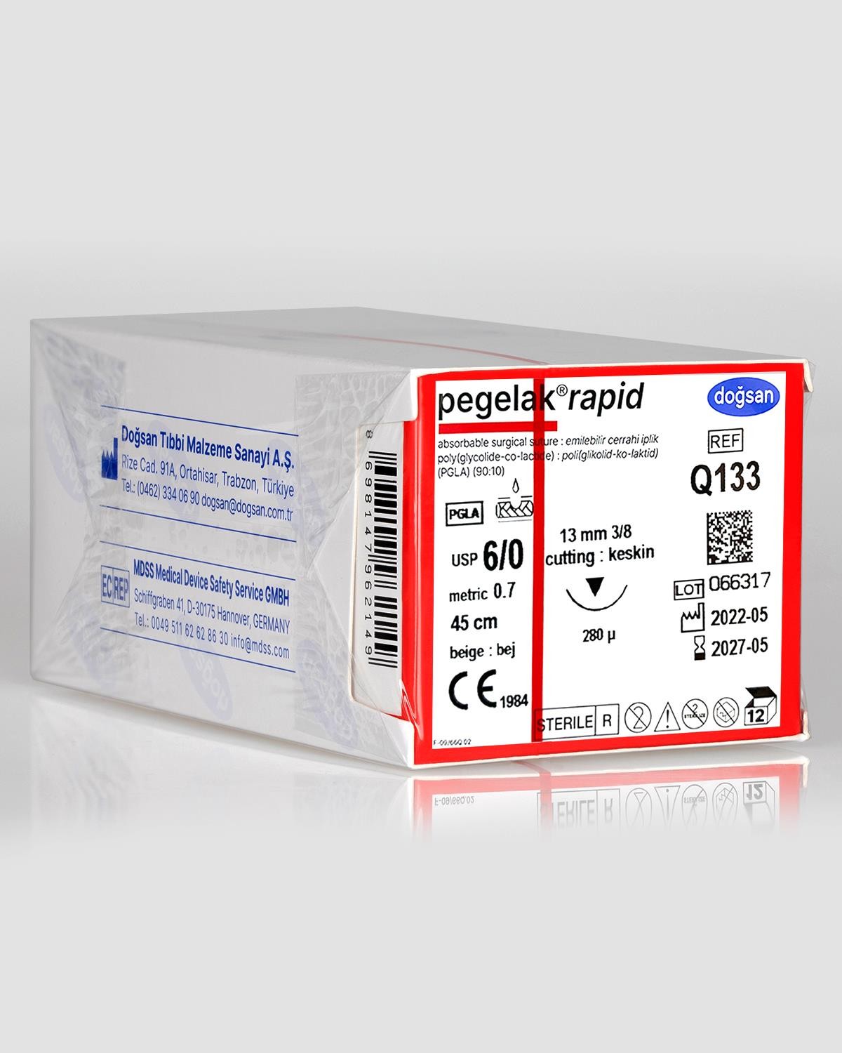 Pegelak Rapid 6/0 13 3/8 Keskin (▼) 45cm PGLA Emilebilir Sütür 12 Ad./Pkt; Adlı ürün Cerrahi operasyonlarda kullanılması önerilir.