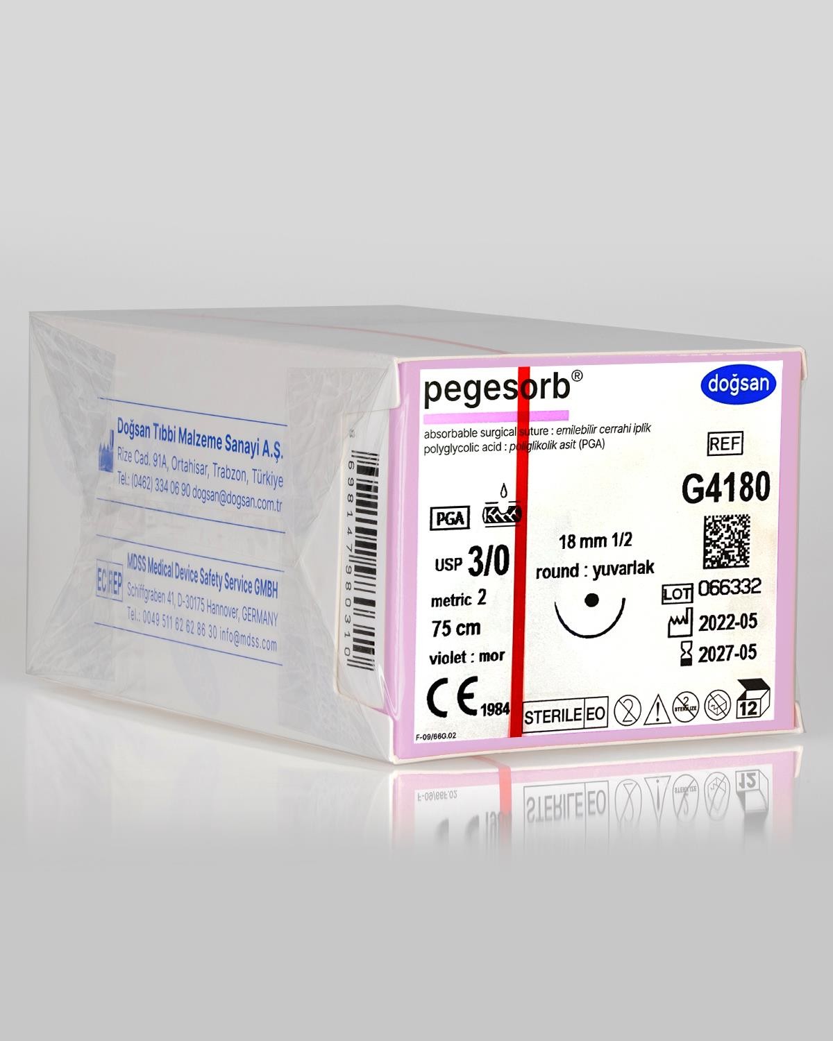 Pegesorb 3/0 18 1/2 Yuvarlak (●) 75cm PGA Emilebilir Sütür 12 Ad./Pkt; Adlı ürün Cerrahi operasyonlarda kullanılması önerilir.