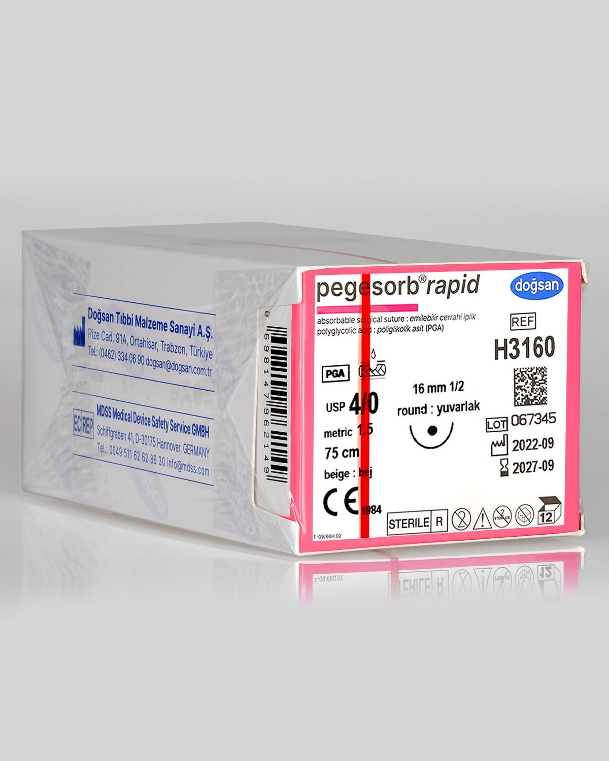 Pegesorb Rapid 4/0 16 1/2 Yuvarlak (●) 75cm PGLA Emilebilir Sütür 12 Ad./Pkt; Adlı ürün Cerrahi operasyonlarda kullanılması önerilir.