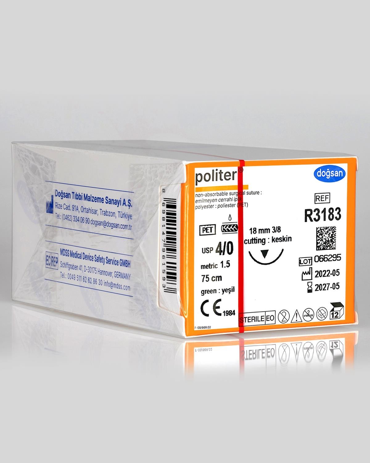 Politer 4/0 18 3/8 Keskin (▼) 75cm Polyester Emilemeyen Sütür 12 Ad./Pkt; Adlı ürün Cerrahi operasyonlarda kullanılması önerilir.